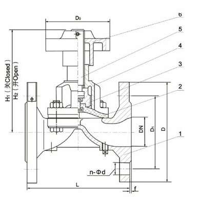 DN | 公称压力 | 工作压力 | L | D | D1 | n-Фd | f | H1 | H2 | D0 | 质量 Kg |